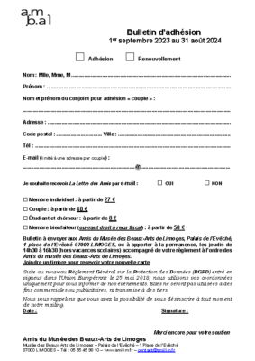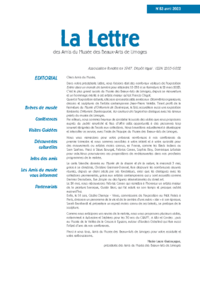 - L’accès gratuit au Musée des Beaux-Arts de Limoges sur présentation de la carte d’adhérent à jour de cotisation.